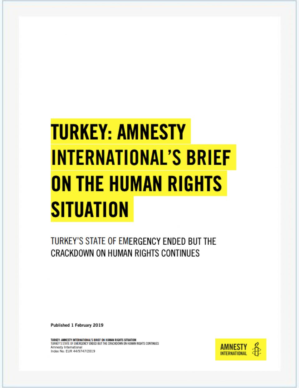 Turkey: Amnesty International’s Brief on the Human Rights Situation – “Turkey’s State of Emergency Ended but the Crackdown on Human Rights Continues.”