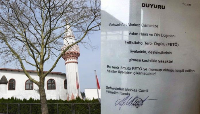 “Entry banned for traitor and enemy of religion FETO members, supporters of Schweinfurt Central Mosque. The membership of those who are determined to be the members of the FETO terror organization will be cancelled,” a leaflet hung on the gate of the mosque stated.
