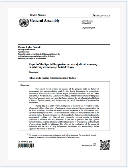 During the period under review, killings due to excessive use of force by security officers and killings of members of vulnerable groups persisted. Some measures taken by the State, including a draft law that would increase the powers of the police to use force, appear to take regressive steps. The Government of Turkey has introduced measures in an attempt to reduce domestic violence, but efforts need to be further intensified and properly implemented. Lesbian, gay, bisexual and transgender persons remain particularly vulnerable to violence and lack protection, in law and in practice. The fight against impunity remains a serious challenge and the effectiveness of investigations and the length of proceedings should be addressed. The effect of the application of the statute of limitations and the lack of fully independent mechanisms for accountability further aggravate the climate of impunity. Read More