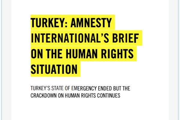 Turkey: Amnesty International’s Brief on the Human Rights Situation – “Turkey’s State of Emergency Ended but the Crackdown on Human Rights Continues.”